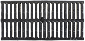 Type iron slotted -A ductile iron grate with perpendicular slots to the trench body. Finished with a black coating.